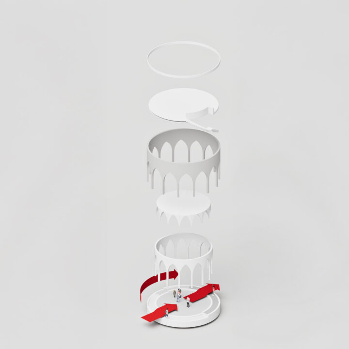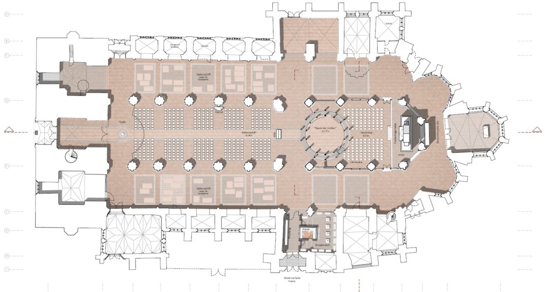 Ganz bewusst haben wir uns für einen Lettner als frei eingestellte Figur entschieden. Während der Lettner historisch die Priesterkirche von der Laienkirche trennte, ist der neue, kreisrunde Lettner als verbindendes Element konzipiert.